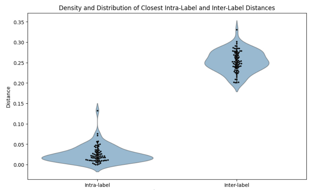 I think, generally speaking, this model is effective. That is, I’ve found that the model tends to perform really well at distinguishing different but very related types of content. For instance, I tested it out on requests for different but closely-related types of pasta recipes, and it generally did well at distinguishing them. That is, the distances in 768-dimensional space between the responses within each pasta recipe type (as output by GPT-3.5) were generally much smaller than the differences between recipe types.