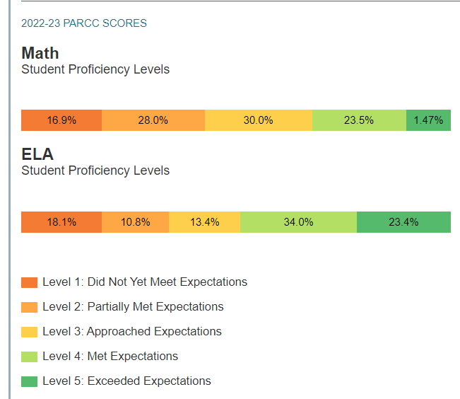 DC CAPE mainly covers math and ELA (English language arts/literacy). And DC OSSE, or the Office of the State Superintendent of Education, releases a lot of data on the results. At the school level, they release overall percentages of students meeting/exceeding expectations, but they also slice the data by various subgroups. These include student grade, the specific subject (for instance, some 8th graders take 8th-grade math, others algebra or geometry), and even demographic group. The scores themselves are also available at three different levels of aggregation: levels 1 through 5 individually, levels 3+ (approaching/meeting/exceeding expectation), and levels 4+ (meeting/exceeding expectations).
