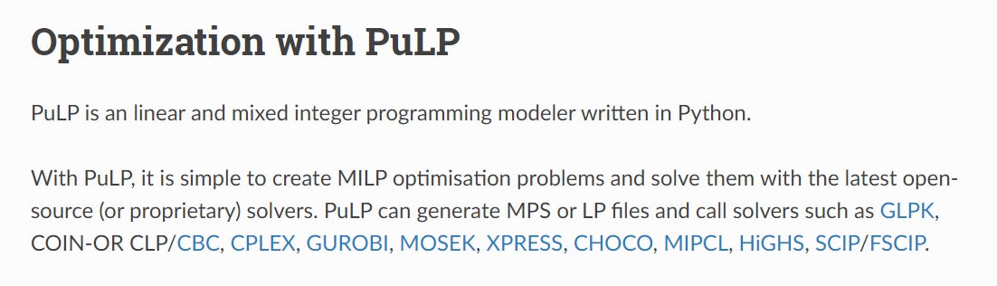This year, I started using the Python package PuLP, which adds a couple of pieces of functionality. First, it gracefully handles the inequalities/constraints: it takes full advantage of the fact that no student groups are negative, as well as the greater than/less than percentage numbers. Second, because it solves equations by finding the minimum and maximum possible answers, it can find ranges of numbers for when it’s not possible to get an exact answer.
